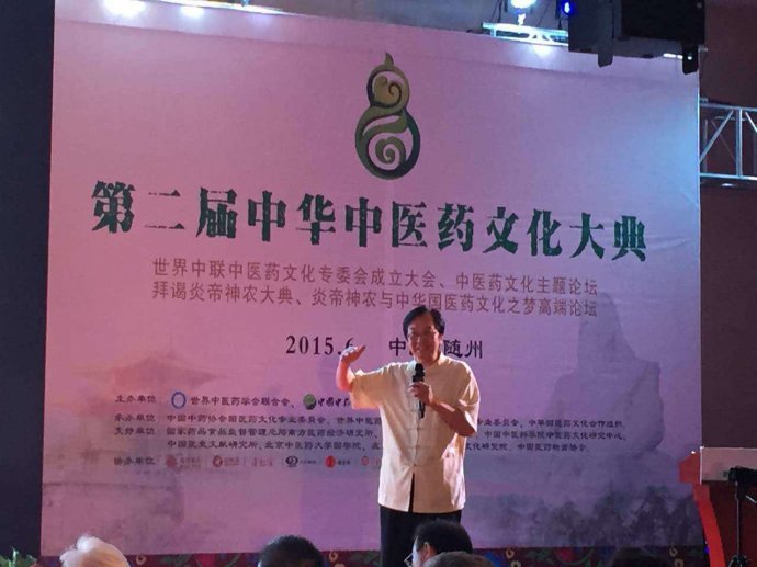 6月12日,农历四月二十六,是中药始祖炎帝诞辰,荆楚大地阳光灿烂,姜水汤汤,编钟鸣盛世,四海颂神农,炎帝神农大殿巍峨壮丽,8时30许,隆重的乙未年世界华人炎帝故里寻根节暨拜谒炎帝神农大典在童歌中开幕,全国政协副主席马飚,十届全国人大副委员长许嘉璐,湖北省委书记李鸿忠等政要出席,世界中联中医药文化专委会理事会全体成员与来自全球海内外华人共五千余人参加了盛会,现场钟鼓齐鸣,礼花绚丽,恭启圣门、点燃圣火、行三献礼、敬献花篮与高香,仪式庄严肃穆,大典气势恢宏,中央电视台现场直播。