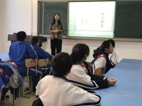 第一课由教研室主任段晓华教授为热爱国学的良乡六中同学们讲授。她以什么是国学、国学的核心是什么、学习国学的方法是什么这三个问题为主线,组织同学们开展了热烈的讨论,让同学们了解到了国学是中国固有学术的总称,它既是一门研究中国过去历史文化的学问,又是立国之本、民族之魂。它既是学术,又是文化,包括精神思想文化、制度行为文化、物质形态文化三个层次,其中,精神思想文化是核心。学习国学的最好方法便是阅读古代经典。为此,项目组特意为同学们带来了儒家经典《论语》,同学们人手两册,一本为带注音的《论语诵读本》,一本为杨伯峻评注的《论语译注》简体字本。此外,我们还为同学们特意制作了“幸福学习、快乐读书”的国学读书笔记本,希望同学们能将自己的读书感悟留于笔端。