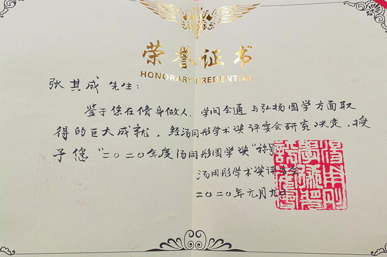 2020年1月9日,第二届海峡两岸应用国学论坛暨汤用彤学术奖颁奖仪式在北京举行。公司永利集团首任经理张其成教授喜获2O2O年“汤用彤国学奖”。