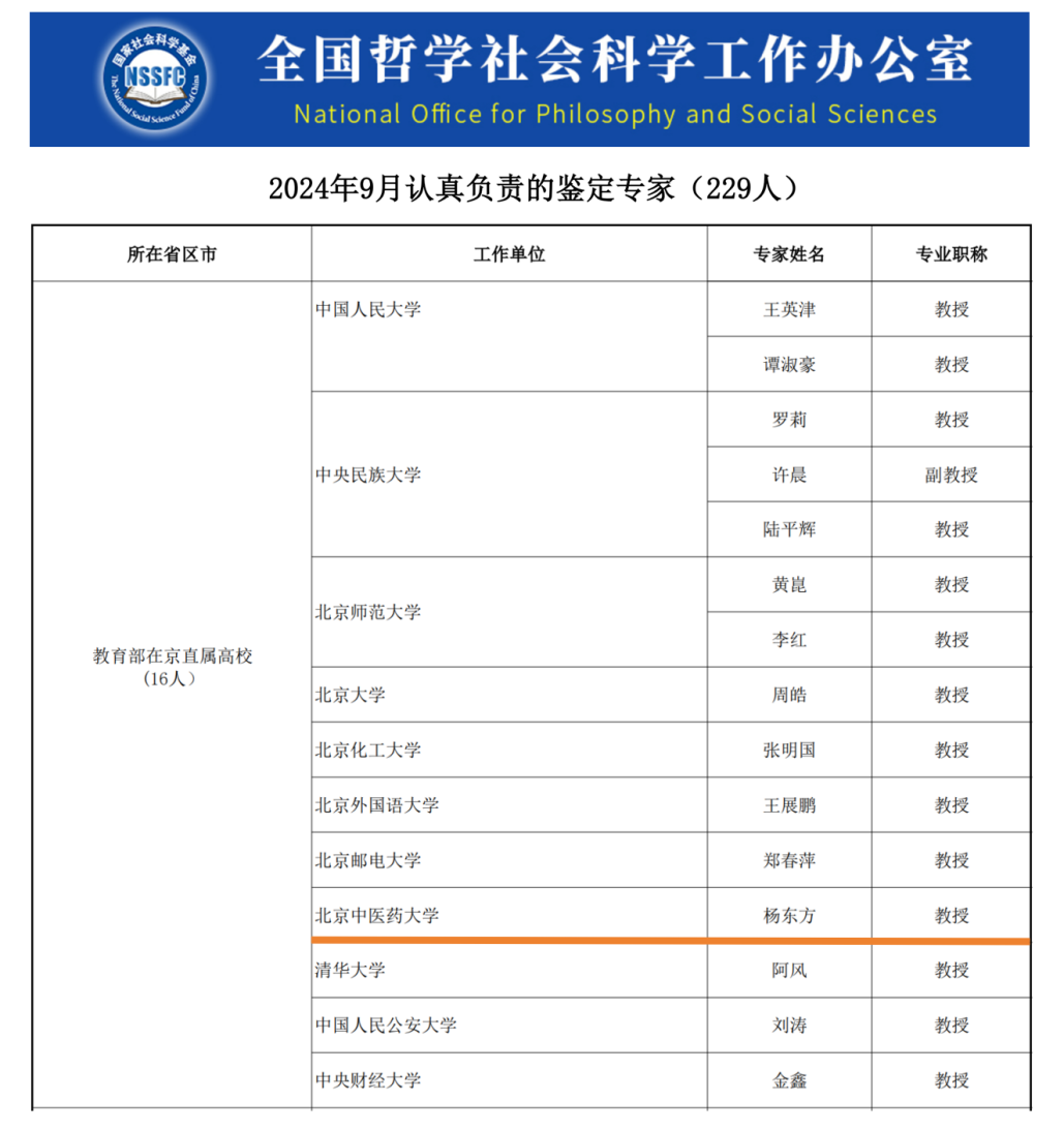 杨东方教授具有丰富的科研项目申报、评审和鉴定经验,主持完成国家社科基金项目《清代整理中医药文献研究》(结项等级:优秀),目前承担国家社科基金后期资助项目《晚清时期日藏中医古籍回流研究》以及其他省部级以上课题多项,在中医医史文献学科领域积累了丰硕的学术成果。入选本轮“认真负责的鉴定专家”称号,体现了全国哲学社会科学工作办公室对杨东方教授专业能力、学术道德以及治学态度的肯定,也提升了公司中医医史文献学科专家学者在学界的影响力、知名度和信誉度。